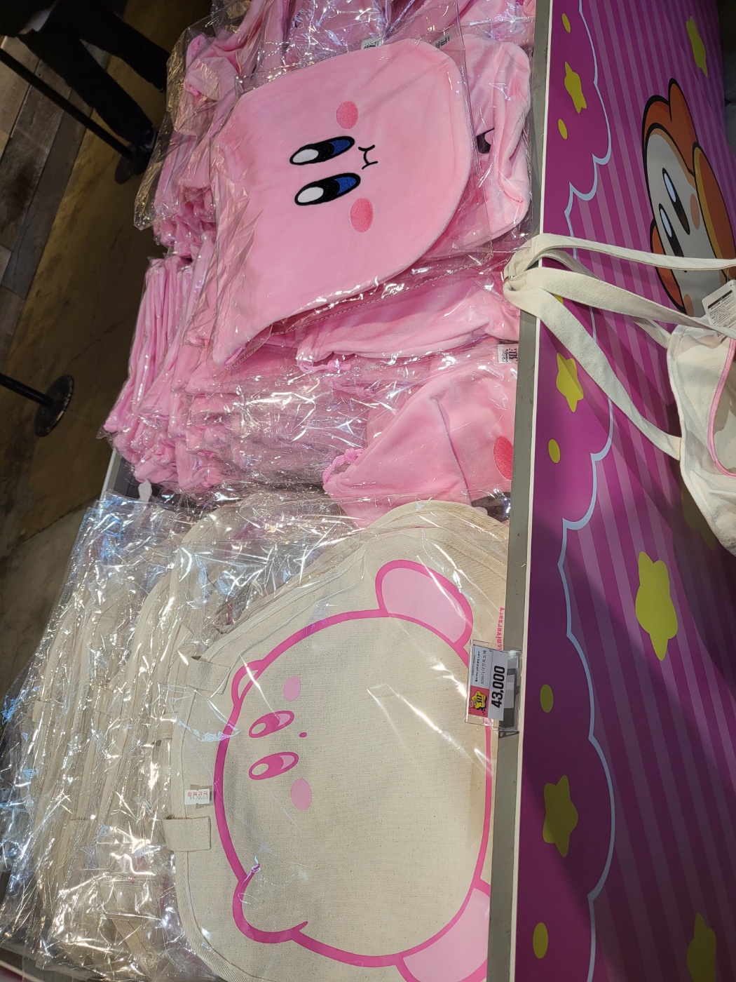 10만원이상 사면 커비 리유저블 백을 주던데 거의 다 받더라고요 .. 제품들이 비싼 편이라 몇개만 사도 10만원이 금방 넘어서 그런거 같았습니다 ㅋㅋ...